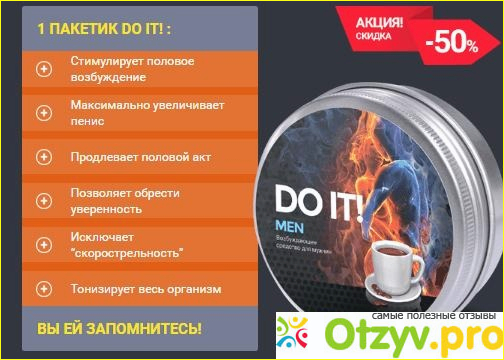 Do it woman - это растворимый кофе, который приготовить очень легко и просто - взять содержимое пакетика и растворить его в горячей воде. Выпить напиток за 15 минут до предпологаемоего полового акта. Одного пакетика в один прием хватит на 5 часов. Скажу, что успеть насладиться можно на все 100%.