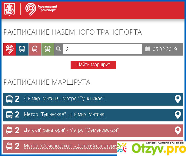 Написано, что раздел находится в стадии доработки. До какого времени будет такое состояние, не сказано. Печально, но это не единственное место, где такая информация водится. Поиск в Яндексе помог отыскать более подходящее местечко. Здесь необходимо указывать номер маршрута, который вас интересует. Мне пришла в голову "двойка", которая ходит от станции метро "Тушинская" до конечной остановки в четвёртом микрорайоне Митино.