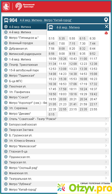 И "двойка" не является единственным связующим звеном между указанными точками. Есть 904-й маршрут, который от конечной остановки на Пятницком шоссе у пересечения с улицей Барышихой идёт по Волоколамскому шоссе, потом по Ленинградскому проспекту, Тверской улице до Китай-города. Здесь движение заканчивается на час раньше.