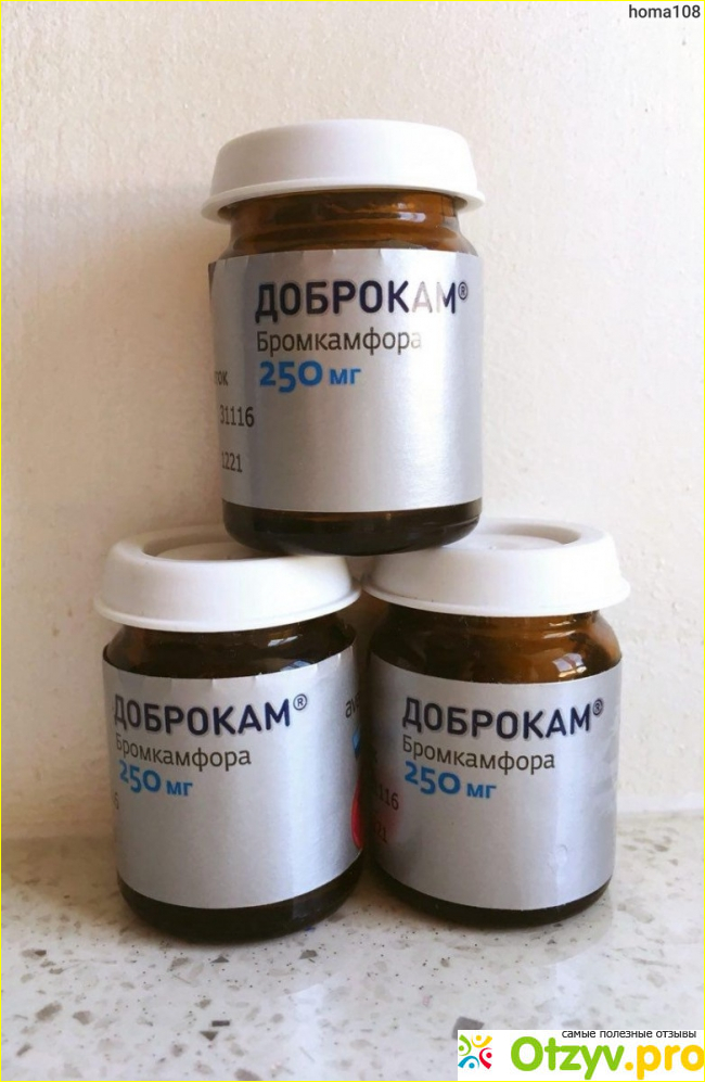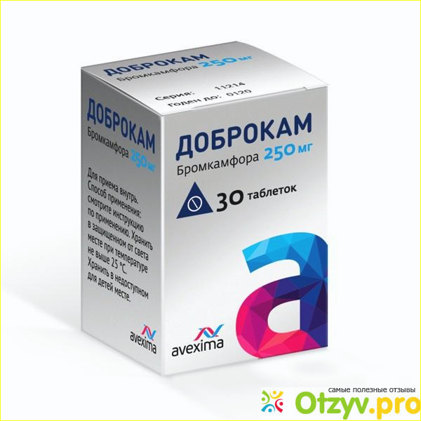 В своем составе содержит действующее вещество бромкамфора в дозировке по 250 мг. Бромкамфора относится к синтетическим веществам, основным его компонентом является камфора бромистая, оказывающая успокаивающее воздействие на центральную нервную систему, благоприятно отражается на сердечно-сосудистой системе, улучшает работу сердца, головного мозга.