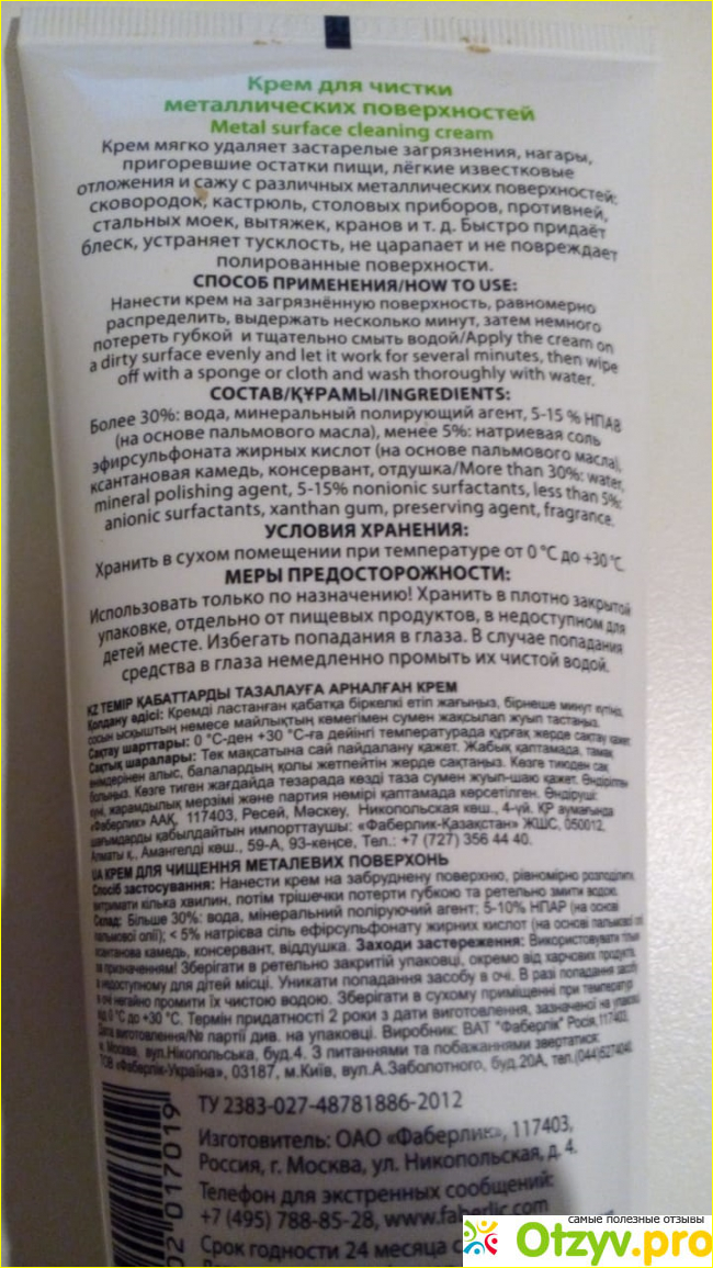 Да, еще чем меня заманило в приобретении этого чистящего средства, то что оно имеет формулу на основе мягкого природного полирующего агента, все-таки меньше химии.
