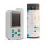 Небольшой прибор как я уже сказала, размером с мобилку "бабушкофон". Облачение - шершавенький пластик, в руке не скользит. С тыла - четыре резиновых кнопочки-ножки, чтобы не скользил ни по полировке, ни если поставить наклонно. С фронта - достаточно читабельный дисплей и пять кнопочек управления. Симпатяга. К нему прилагаются адаптор зарядный и юсибишка. Плюс туба с полосками и несколько инструкций: к самому гаджету, к полоскам и к Приложению на смартфон, которое скачивается и позволяет как хранить полученные результаты анализов, так и консультироваться с урологом по поводу этих самых результатов.