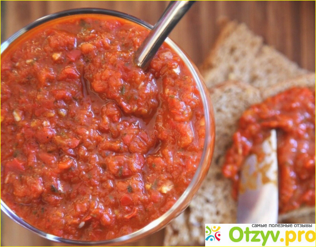 Я всегда готовлю много порций, потому что такой аджикой можно легко перекусить, намазав её на хлеб. Мои домашние любят запивать её чаем, как бы странно это не звучало. Попробуйте, это очень вкусно.
