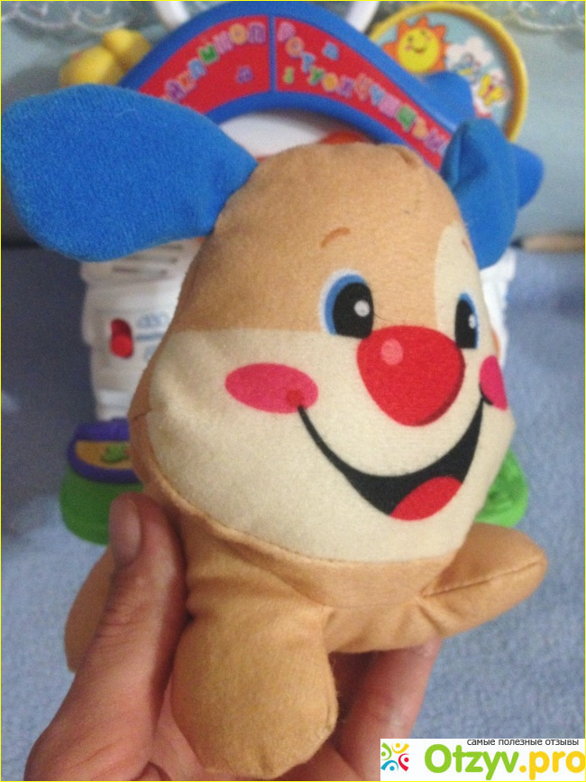 Сам щенок тоже очень понравился малышу, он не большой, как раз удобный для детской ручки, внутри щенка есть шарики (или что-то подобное) что создает эффект погремушки.