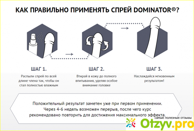 Спрей Доминатор - простой баллончик с жидкостью, которую достаточно просто распылить на половой орган и ждать результата.