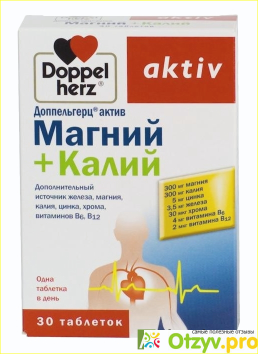 Doppelherz Aktiv Магний+Калий – эффективное средство, отмечается положительные результаты уже после кратковременного приема. Является общеукрепляющим препаратом, обогащает весь организм необходимыми минералами и витаминами, микроэлементами; помогает укрепить иммунную систему, всю сердечно-сосудистую деятельность, успокоить нервную систему, укрепить сосуды, снимает усталость и придает тонус и энергию.
