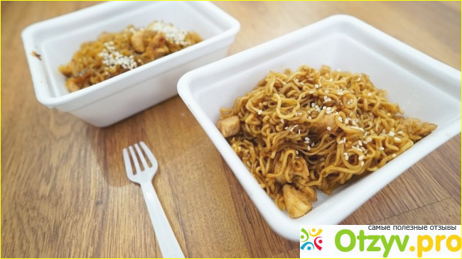 Вместе с пюре и лапшой в комплекте идет вилка, приправа и пакетик с жиром.