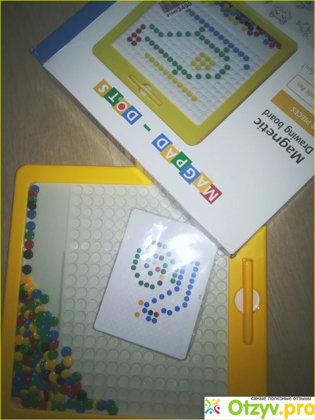 Цветные пуговки передвигаются с помощью магнитной ручки и через прозрачный пластик никуда не деваются, что очень безопасно.