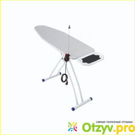 Внизу есть розетка, в которую можно подключить вилку от утюга. Таким образом, нет необходимости устанавливать гладильную доску близко к розетке в стене, а шнур от утюга не мешает процессу выглаживания.