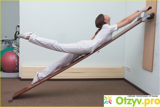 Для выполнения первого упражнения тренажер нужно установить под углом в 60 градусов. При этом рукоятки для рук должны располагаться в верху. Пациенту нужно лечь спиной на тренажер и вытянуться вдоль доски. Руки должны держать тренажер над головой. А дальше нужно водить носками поочередно в разные стороны. После выполнения этого упражнения можно переходить к следующему. Для того нужно тянуть носки от себя и по направления к себе. Причем когда носки будут тянуться по направлению к себе нужно стараться аккуратно приподнимать голову.