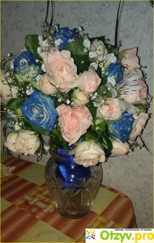 Предстояло серьезное торжество - юбилей мамы, хотелось подарить особенный букет, тем более, что я живу в другом городе. О сервисе SFlovers знаю давно, периодически делаю там заказы. В этот раз выбрала из каталога SFLowers шикарный букет из разноцветных роз, даже синие там были.