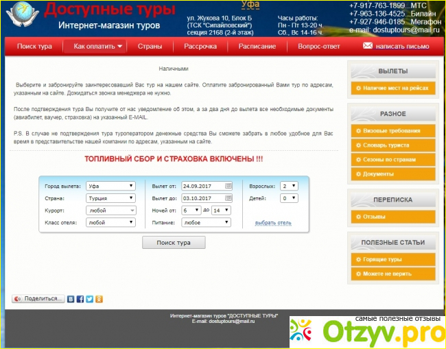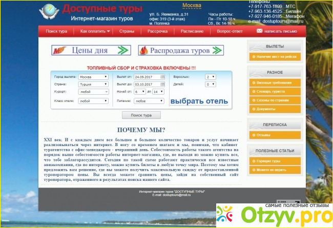 Сайт мне понравился. Особенно хорошо то, что на сайте отсутствует лишняя и бесполезная информация. Не приходится долго искать какую-либо информацию. Очень удобно сделан поиск и оплата туров.