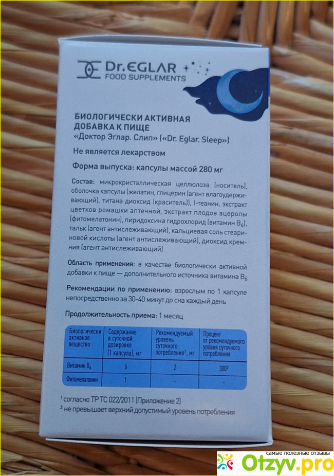 В баночке 60 капсул, принимать нужно минут за 30–40 до сна.