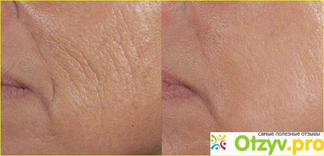 на самом лбу морщинки стают практически незаметными, носогубные складки исчезают, а так же сама сеточка из морщин вокруг глаз;