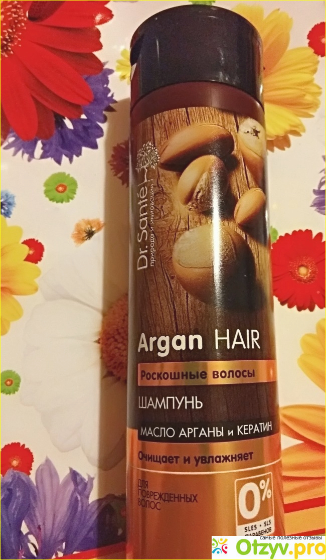 Но покупать новомодные шампуни с наличием силикона в составе я не хочу, потому как для моих лично волос силикон не полезен. Волосы очень быстро жирнятся и утяжеляются. Довольно давно уже я пользуюсь шампунью от доктора Санта Рскошные волосы с маслом арганы и кератином. Даная шампунь нравится мне тем, что она отлично моет волосы, придает им здоровый блеск.