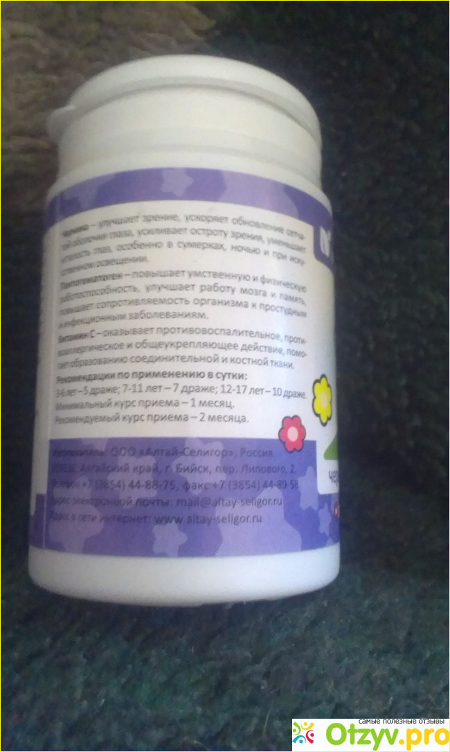 Состав драже " Алтайский Маралёнок" Черника очень интересный, полезные ингредиенты направлены на поддержание здоровья детских глазок. Единственный серьёзный минус состава: сахар на первом месте идёт, драже очень сладкие. Плюс ко всему прочему может быть индивидуальная непереносимость отдельных компонентов состава. Состав высокоаллергенен. С полным составом вы можете, ознакомится на представленном фото. Подробнее предоставлена информация о трёх основных компонентах : черника, пантогематоген, витамин С.
