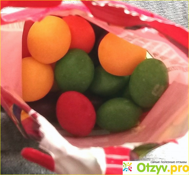 Состав драже, конечно ужасен: сплошные " Е" шки, красители, загустители, ароматизаторы , глазирователи и т. д. И ещё один недостаток драже, содержат огромное количество сахара, соответственно сильно калорийны.