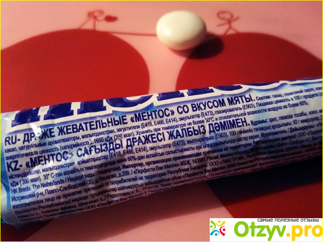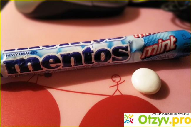 Автобус уже подходит, а у нас нет «стратегического запаса». Бежим к ближайшему киоску прямо на остановке и наспех покупаем что-нибудь ментоловое. Это оказывается Ментос, такое раньше мы не брали никогда. Распаковали уже в автобусе. Это оказались небольшие круглые, но сплюснутые конфетки белого цвета в слое глазури, напоминающей яичную скорлупу. Запах настоящей перечной мяты заполнил пространство автобуса.