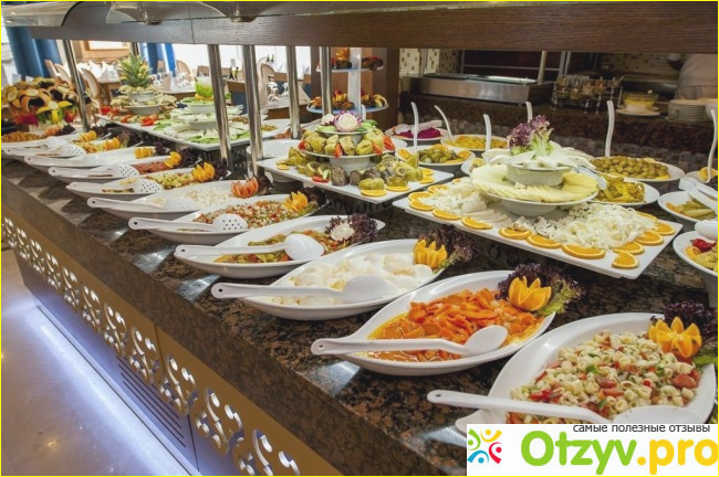 Ресторан поразил своим многообразием. Я вегетарианка, и мне было важно, чтобы я могла быть уверена в том, что рис не варили на мясном бульоне и не жарили картофель в животном жире. Здесь все было чисто. Были паровые овощи, много салатов, вернее нарезки, из которой было легко сделать салат. Фрукты, выпечка, было все я осталась очень довольна. Арбузы, дыни, все было по высшему классу. По алкоголю также ничего не скажу, так как не пью. Но, одна русская дама жаловалась на то, что коктейли здесь ужасные, разбавленные.