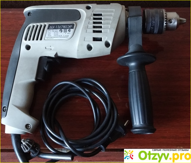Дрель Интерскол ДУ-13/780ЭР предназначена для сверления отверстий в дереве, кирпиче и бетоне. Мощность электродвигателя 780 Вт, работает от электросети напряжением 220 В. Имеет функцию ударного вращения, но может работать и в безударном режиме. Для смены режимов работы есть переключатель в верхней части корпуса.