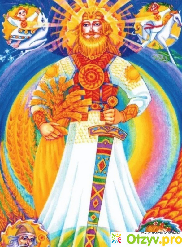 Бог солнца, сын Сварога, победитель тьмы, символ справедливости и благополучия. Интерпретируется как «богатство дающего». Когда он путешествует по небу, то является в виде и молодого человека, и старика.