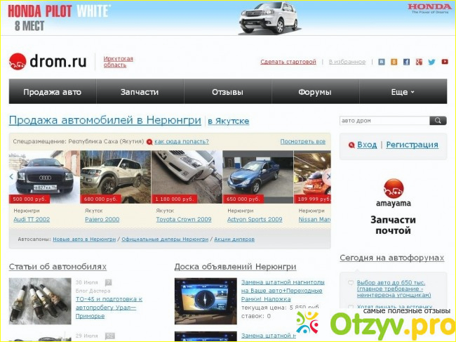 ЗА последние пару лет, пожалуй один из самых популярных сайтов в интернете. Реклама крутится постоянно и причем, как по федеральным каналам, так и на баннерах в городе, так и в интернете, при просмотре видео ролика. Основное направление сайта дром, это конечно же направление автомобильного характера.