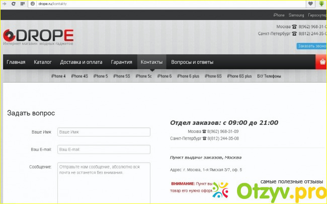 Тут указаны телефоны, адрес и возможность задать вопрос.