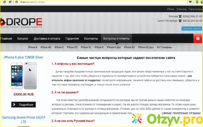 Оформлено в серых тонах различной насыщенности. И лишь названия гаджетов, некоторые из них, выделены красным. Другие – голубым. Цифры мелькают не малые, пятизначные. А потому сообщение внизу о том, что есть смартфоны от 8 тысяч рублей, смотрится весьма обнадёживающе. Также радует и заставляет детальней ознакомиться с сайтом сообщение, что оплачивать нужно только после проверки телефона. То есть его можно пощелкать, покрутить в руках, убедиться, что всё работает. И гарантию обещают год, что тоже нормально.