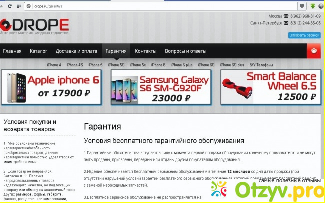 В разделе «Каталог» не так уж и много пунктов: АйФоны, Самсунги и Гироскутеры.