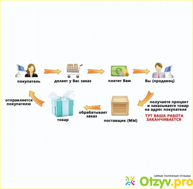 А для вас прежде всего выгода в том, что не нужно иметь товар. Т. е. не нужно тратиться на закупку товара, не нужно арендовать склад и тратиться на логистику. Это значительная экономия. Это единственное рациональное зерно этой схемы.