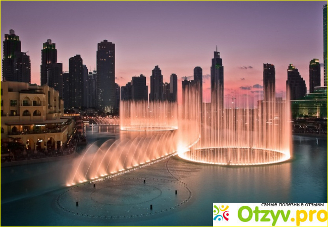 Танцующие фонтаны в Дубае — расположенные в большом по территории искусственном озере музыкальное фонтаны, которые то поднимаются ввысь, то низвергаются в воду