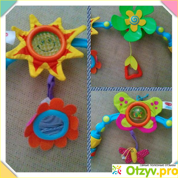 Причём часть игрушек встроена в дугу, а часть прикреплена различными приспособлениями.