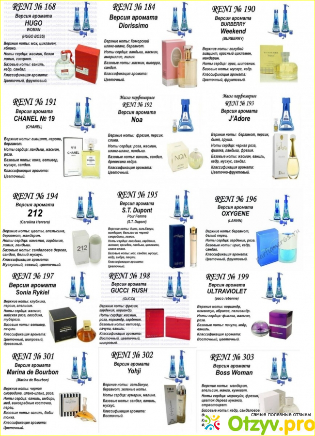 Может быть наливная парфюмерия Рени от оригинала далеко, однако качество не хуже, и есть возможность попробовать самые разные номера.
