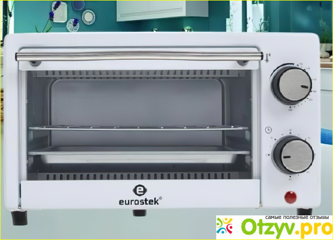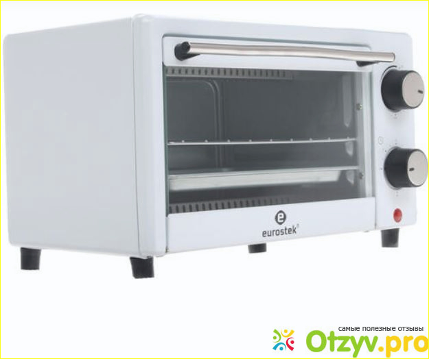 Поиски по рынку в этом ценовом диапазоне привели к компактной электропечи от компании Eurostek. У них множество различных вариантов и эта модель ETO-009A оказалась наиболее подходящей по своим габаритным размерам. Остальные варианты в наличии в магазине были гораздо больше и поэтому плохо годились для компактного применения. Так что для нас выбор был очевиден, и мы приобрели данную печку-духовку. Плитки у нас уже были, также раздельные поэтому, данная небольшая духовка гармонично дополнила остальные кухонные приспособления. Сейчас на рынке практически нет других производителей кроме китайских. Можно подыскать более габаритные размеры корейского производства, но там цена в несколько раз выше. Более дорогие печки обычно совмещены с какими-нибудь функциями. Например, от элитных производителей они часто совмещаются с микроволновками, но стоят как "сбитый Боинг"! Поэтому данный вариант наиболее подходящий, если у вас немного денег. Вот её небольшие технические характеристики и габаритные размеры.