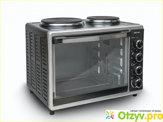 Он позволяет духовке прогреться быстрее. На верху духовки находится два электрических круга так называемые горелки. Одна чуть большего размера, другая меньшего. На них можно готовить первые блюда. Что очень удобно. Я не рекомендую ставить печку близко к стене, потому что в ней есть вентиляционные отверстия для выхода пара. С правой стороны духовки есть четыре ручки регулятора. Первая это рукоятка к температуры от шестидесяти градусов до двухсот тридцати. Эта температура подходит как для приготовления мяса на высоких температурах, также для выпекания различных бисквитов, и даже безе, которому, для приготовления которого необходима низкая температура. Есть ручка таймер до двух часов, тикает, что позволяет выключиться духовке самой когда придет время. Следующая рукоятка указывает мощность конфорок. Они позначаются буквами R и L или RL это включение двух конфорок одновременно. А также режим гриля, и включения тэны вверх и низ одновременно, только низ, или только верхний тэн.. Есть еще и режим разморозки. Когда нужно включить режим гриль будет работать только верхняя тэна и вертел начнет вращаться.