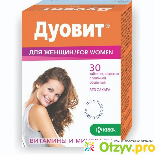 или непереносимостью компонентов. Все же лучше, если витамины, как и другие лекарства назначит вам доктор. Особенно если это касается беременных женщин. А им ведь нужно принимать витамины. Но без консультации специалиста-это табу. Ксть также женские витамины, которые принимать можно в зависимости от возраста. На ни так и пищут. Витамины для женщин после 40 лет и т. д. Мой сегоднишний отзыв будет посвящен еще одному женскому поливитаминному комплексу "Дуовит"Он назначается женщинам, которые привыкли ввести активный образ жизни. У которых несбалансированное питание, которые много работают. Дуовит содержит целый комплекс полезных веществ, которые нужны нам, женщинам, каждый день. Это всем известные витамина А,D, Е и полный комплексвитаминов группы B. А также ниацин, пантеноваяи фолиевая кислота в правильной дозировке, биотин.