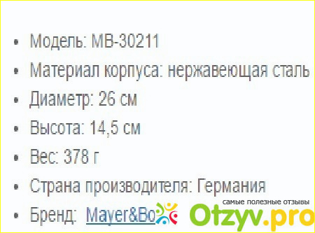 Начну с основных параметров этого изделия, которые я отыскала на одном из сайтов, предлагающих эту модель.