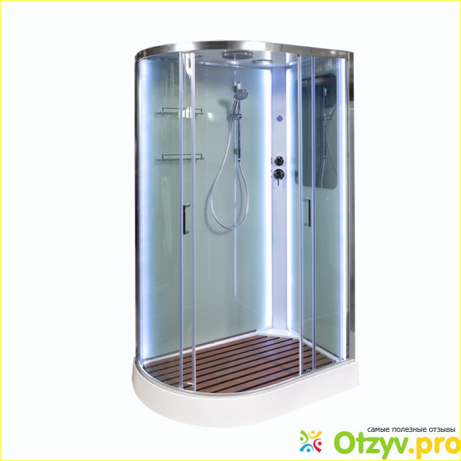 Наличие зеркала и полочек делает кабину более функциональной. Также для нас большой плюс, что кабина имеет низкий поддон с настилом, потому как один из членов семьи имеет проблемы с коленями. Прозрачные стекла кабины смотрятся стильно и современно, проблем с поддержанием кабины в чистоте мы пока не заметили. Особенно понравилась опция фен - классно избавляет кабину от лишней влаги. В общем, отличный вариант за эти деньги.