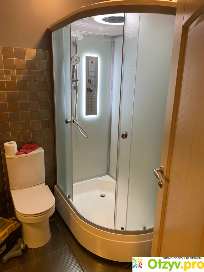 Кабина лишена главного по моему мнению недостатка дешевых моделей. Тут нет пластиковой центральной части, на которой обычно располагаются все элементы управления, электрика, смеситель и прочее. Тут перенесли на стекло все это, сделав и надежнее и удобнее и по факту дешевле (правда, панель глянец, матовая была бы лучше, но это мелочи).