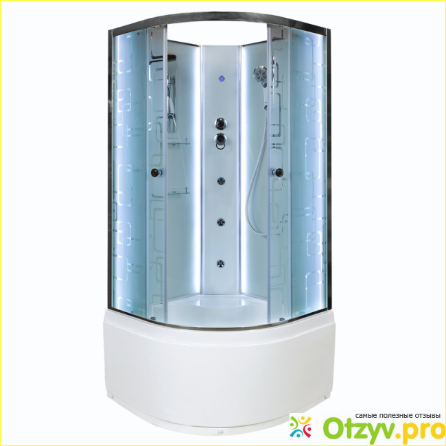 Гидромассаж прекрасно снимает усталость, подсветка создает приятную атмосферу расслабления. А глубокий поддон можно использовать для распаривания ног, если набрать в него воды, или как мини-ванну для детей. Кабина выполнена из качественных, прочных материалов. Стекла имеют симпатичный рисунок, известковый налет на них не скапливается. Наличие зеркала и полочек делает кабину еще более функциональной. В общем, это отличный вариант для нашей семьи.