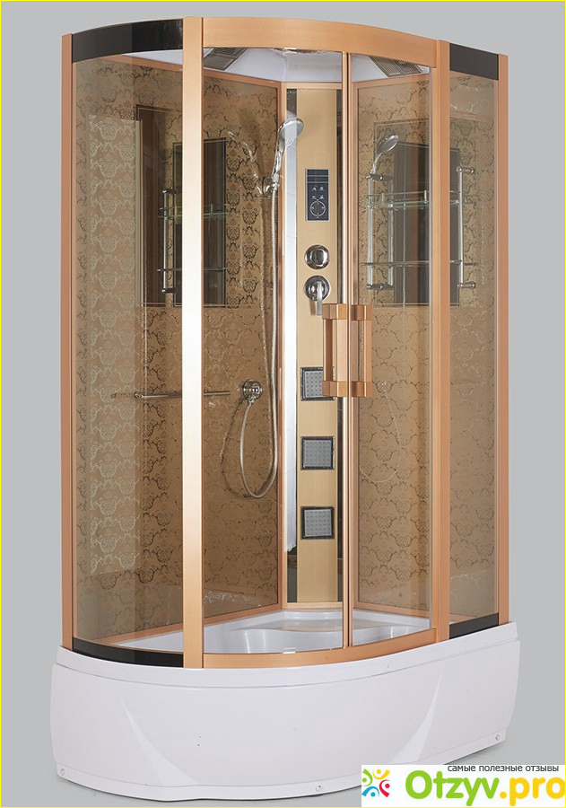 Форма ассиметричная, дверцы прозрачные, раздвижные. Чтобы не задохнуться в кабине, есть вентиляция, поэтому если у Вас есть проблемы с высокой влажностью, то кабина закрытого типа решит этот вопрос. Размеры 80x220x120 см, небольшая и немаленькая, но внутри есть где развернуться, мой муж весом 102 кг вмещается без проблем. Также достоинством можно выделить высокий поддон, это очень удобно, иногда полезно, когда нужно что-то замочить (тюль, например). Но к вопросу выбора высоты поддона каждый должен подходить исходя из своих потребностей. Потому что наши знакомые, наоборот, тащатся от того, что у них поддон низкий и не нужно через него все время перешагивать, боясь упасть. Иногда пользуемся радио, интересная изюминка, которая может поддержать хорошее настроение. Управление кабиной не мудрёное, разобраться можно с одного раза потыкая на все кнопки). Вроде бы все описала, отдали за кабину 34100 и не жалею, за такую и больше бы отдала, но повезло, брали по скидке.