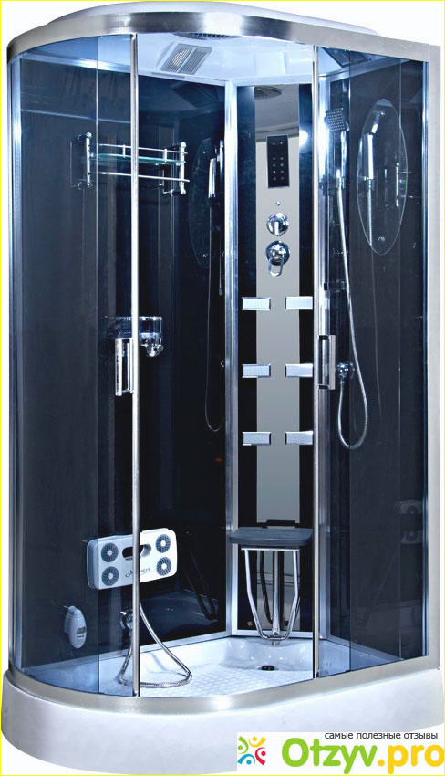 У данной модели асимметричная форма. По-моему, смотрится намного интересней, чем полукруглые модели. Три вида гидромассажа, что несомненно меня радует. Массаж ног делаю каждый вечер. Скажу вам, это просто обалденно. Усталость снимает на раз. Вообще не знаю, как я жила без него раньше. В кабине есть зеркало, очень удобно делать масочки, не выбегая наружу. Верхняя подсветка и радио. Прикольно послушать приятную музыку во время водных процедур. И еще одна приятная мелочь – это сидение. Устала, посидела. Кстати, у этой кабины есть правостороннее исполнение и левостороннее. Для себя брала правую. Очень удобный слив. Чищу сама без проблем, не прибегая ни к чьей помощи. Вся кабина выполнена очень гармонично и стильно. Все подобрано с исключительным вкусом. Хромированные детали, тонированное стекло. Даже придраться просто не к чему. Надеюсь, что и служить будет долго и не разочарует меня и моих домочадцев. Эту душевую кабину рекомендую, без всяких сомнений покупайте и вы ни за что и никогда не пожалеете.