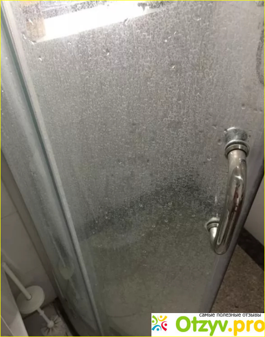 - сложно в уходе, особенно с жесткой водой. После КАЖДОГО принятия душа нужно смыть остатки воды со стеклянных стенок. Так же следует осушить все стыки, что бы не застаивалась вода. Показываю что бывает с душевой кабиной если нет полноценного ухода.