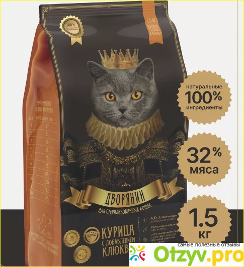 Крупные гранулы я не очень люблю покупать. Мелкие, соответственно, для котяток. Вопрос сухих кормов для кошек упирается в проблему переваривания и вкуса. Если речь идет о переваривании, то в корме должно быть идеальное сочетание компонентов, больше натурального и клетчатки. Ну а вкус у котиков разный. У меня каких только не жило котов, у всех свой вкус, иногда они просто не едят корм, если им не нравится. По составу корм Дворянин мясной, ингредиенты натуральные, в составе есть витамины, особенно для шерсти. Корм подходит для ежедневого употребления. Коты его хрумкают с удовольствием. Плюсом является цена. Корм Дворянин относительно недорогой, но качественный. Поскольку я занимаюсь также бездомными животными, то мне нужно всех накормить и обеспечить им здоровье. Трудно найти корм с таким богатым составом как у корма Дворянин. Он подходит не только для стерилизованных котов. Корм Дворянин – оптимальный по составу, цене и по качеству. Если нужно обеспечить кошке сбалансированное питание, то корм Дворянин вполне справляется с такой задачей. Корм отлично хранится в сухом прохладном месте, я обычно держу его в холодильнике. Производителю оставляю на заметку увеличение разнообразия вкусов, чтобы больше радовать наших любимых питомцев.