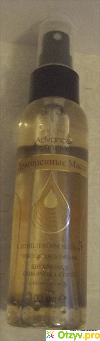 Не так давно я приобрела себе по каталогу Avon набор из трех продуктов "Драгоценные масла", в который входила и двухфазная сыворотка-спрей для волос. В небольшом тюбике видно, что сыворотка разделена на 2 части, которые перед применением надо хорошо размешать, чтобы спрей стал однородным.