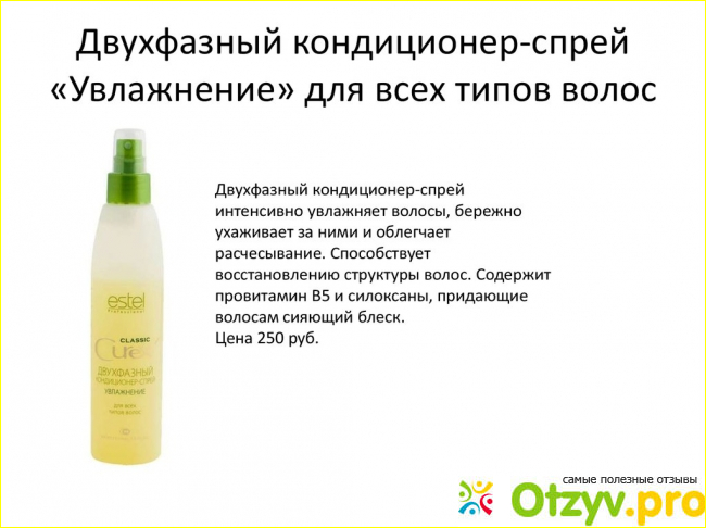 Двухфазный кондиционер-спрей для волос увлажнение Estel curex classic идеально подходит для ежедневного ухода за длинными и сильно сухими волосами. Мне больше всего нравится его распылять именно на сухую длину, потому что так не скрадывается объем. Толк от продукта точно имеется, потому что локоны не путаются, не такие сухие и не торчат одуванчиком по сторонам.