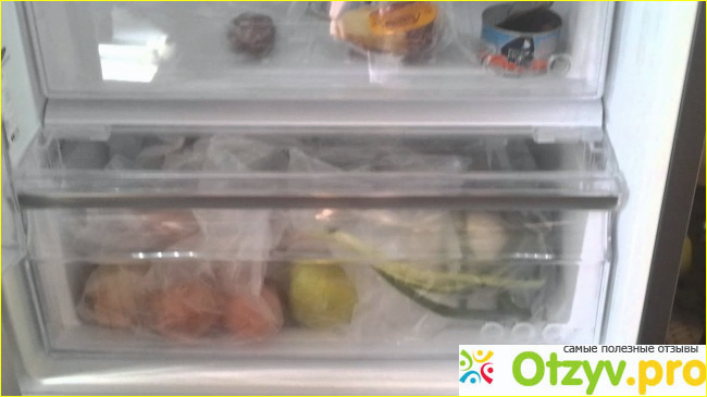 В камере охлаждения отдельно выделена нулевая зона свежести, что еще мне нравится - есть полочка специально для бутылок с вином, контейнер для овощей и фруктоа довольно объемный, кроме этого еще четыре полки из стекла.
