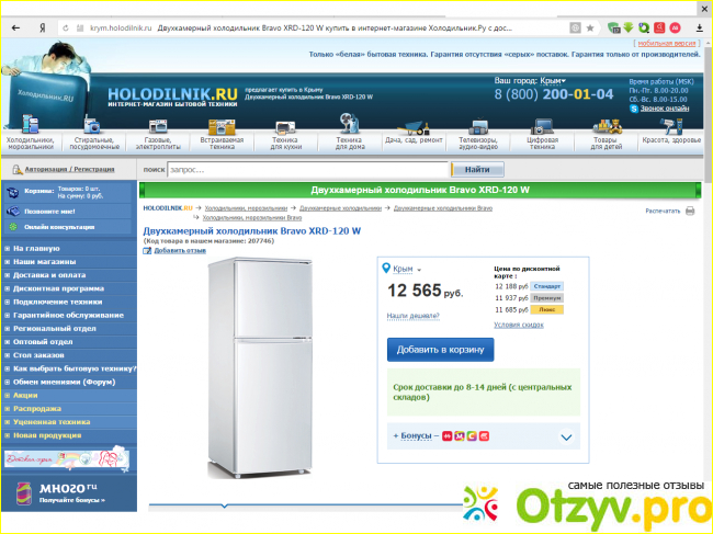 Решила обновить свой старый холодильник и заменить его на новый. В основном хотелось купить что-то качественное и к тому же не сильно дорогое, а так же, чтобы быстро морозило и продукты не портились так быстро, как это у меня чаще всего бывало. Долго выбирала и все же остановила свое внимание на такой модели, как двухкамерный холодильник bravo xrd-120 w.
