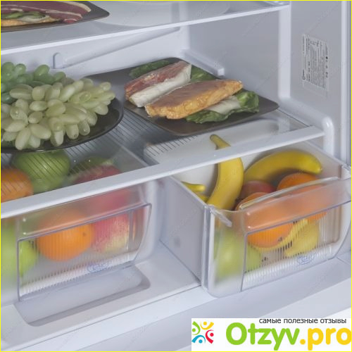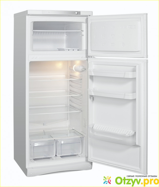 Когда мы пришли в магазин, то увидели много известных марок двухкамерных холодильников, и муж начал советоватся с продавцом-консультантом, какой же холодильник лучше. Этот парень подвёл нас к холодильнику Индезит, довольно таки распространённый производитель, и ничего плохого никогда о товарах этого бренда мы не слышали. Мне сразу понравилось что у холодильной и морозильной камере, идут отдельные дверцы. Морозильная камера небольшого размера, и имеет одну полочку, с возможностью переустановки её выше или ниже. Холодильник обычного белого цвета, с подсветкой внутри, но выглядит достаточно стильно, на дверцах морозильной камеры обозначается название его.