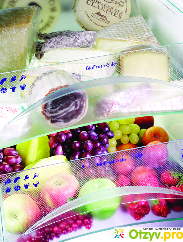 Мне очень нравится, что в данном холодильнике присутствует регулятор влажности в зоне свежести с двумя отделениями: в отделениях можно хранить самые разнообразные продукты. Это и мясо, и рыба, и овощи, фрукты и т. д.